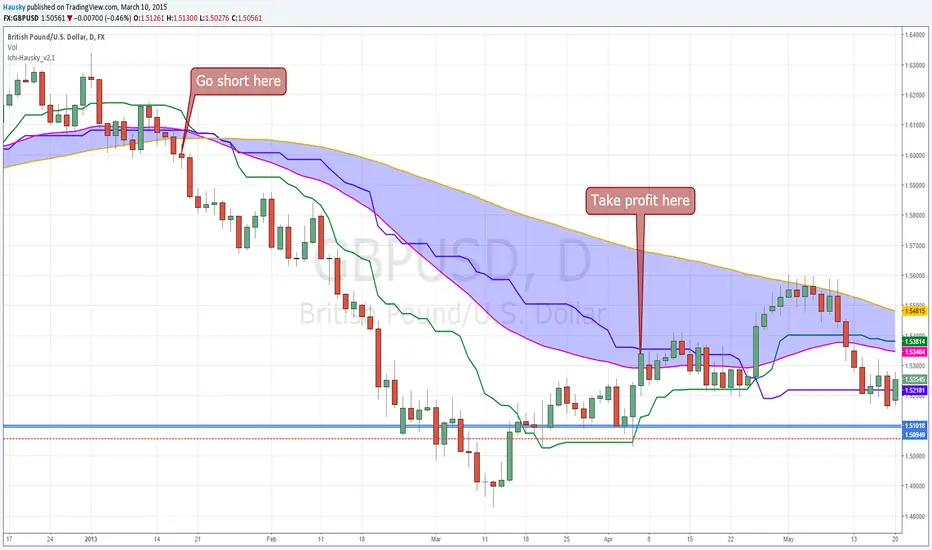 Take profit can be set at last low or you can use trail stop on the EMA, MA, Kijun-sen or Tenkan-sen.