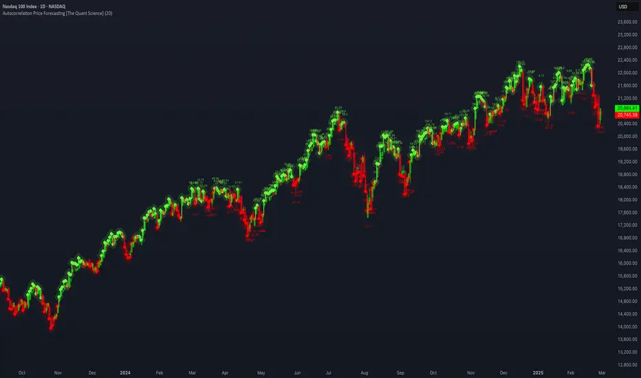 An advanced model to predict future price movements using autocorrelation and linear regression. This script helps identify recurring market cycles and calculates potential gains, with clear visual signals for quick and informed decisions.