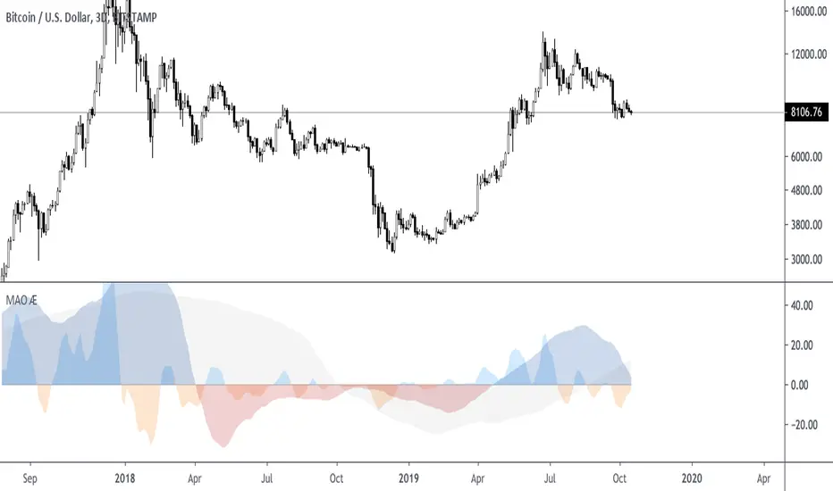Simply MAO or Moving Averages Oscillator uses three MA ranges based on fibonacci sequence to draw a landscape.