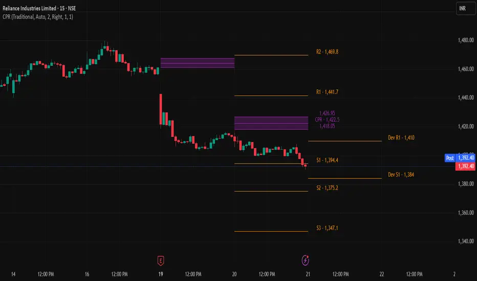 CPR is a price zone made of Pivot, Top Central (TC), and Bottom Central (BC). It helps identify market bias, support–resistance strength, and potential breakout or range days. Narrow CPR = strong move likely; Wide CPR = range-bound market.