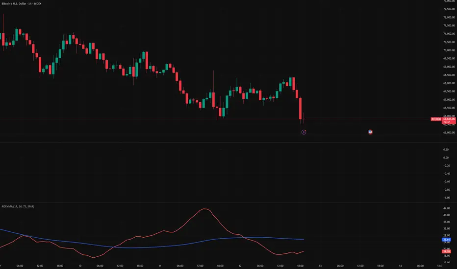 ADX MA (blue): smoothing of ADX using your chosen MA type and length to reduce noise and highlight changes in trend strength