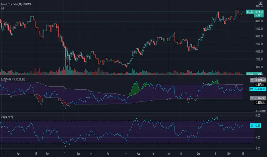 You will now have dynamic overbought and oversold levels. I have also included alerts which may be used to indicate when these conditions occur.