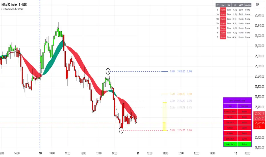 → 7 टाइमफ्रेम्स पर एक साथ दिखाता है (Current, 5m,15m,30m,1H,4H,Daily)