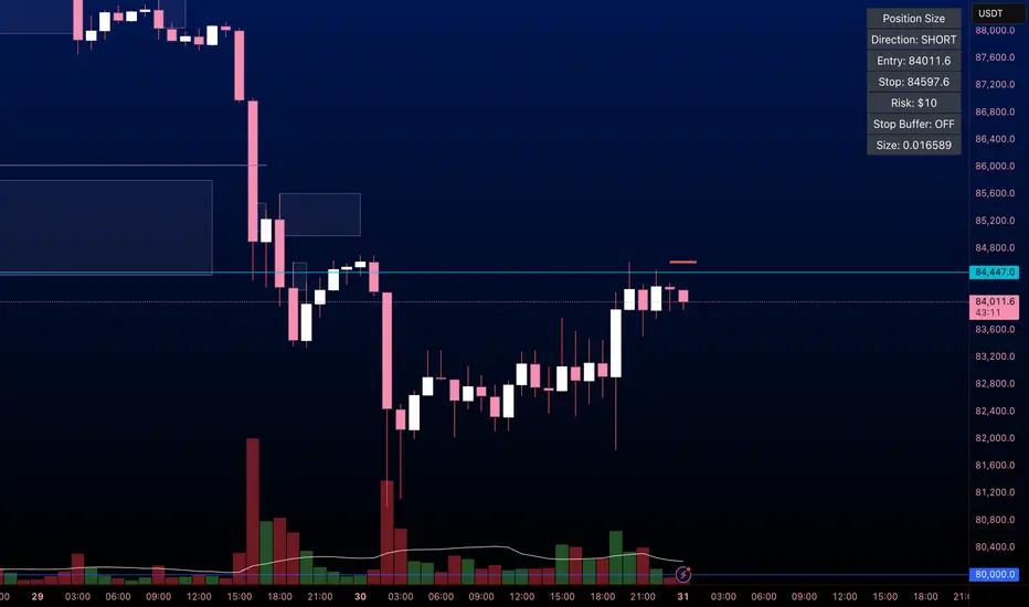 The stop price updates continuously as price moves, and the position size is recalculated live to stay aligned with the selected Risk ($).