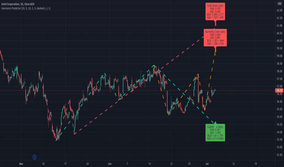 It can detect the Gartley, Butterfly, Bat, Alternate Bat, Crab, Deep Crab, and Cypher.