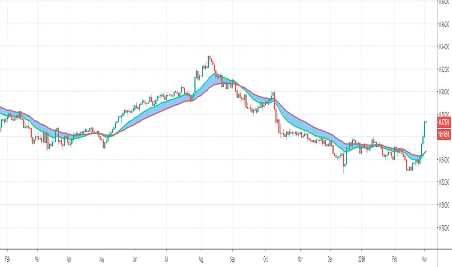 This indicator consists of 2 x McGinley Dynamic moving averages with the ability to fill the area between the 2 MA lines.