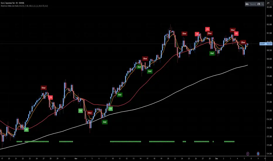 For traders seeking advanced capabilities, including enhanced alerting, dynamic MA switching, and more flexible LTB detection, check out Rhythmic EMAs Lite Premium.