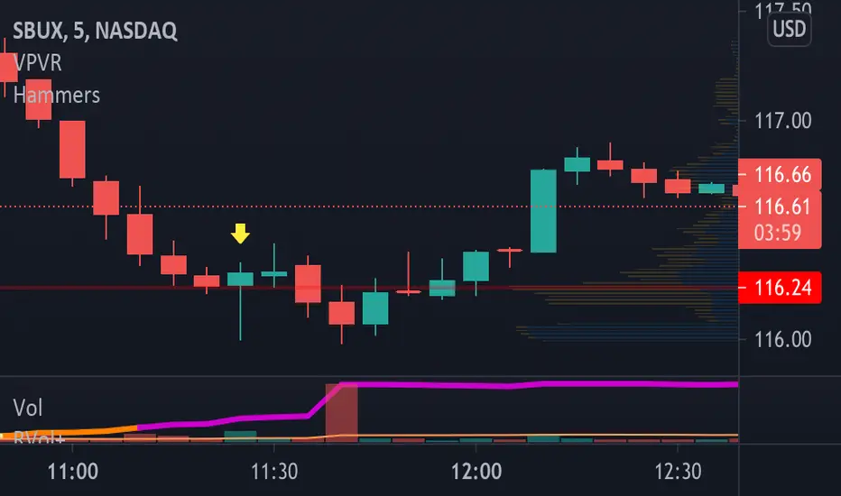 Previously was only marking hammers that had a larger range than the previous candle. Now marking all hammers. If range is less than previous candle, indicator is on bottom of candle. If range is greater than previous candle, indicator is on top of candle.Sürüm Notları