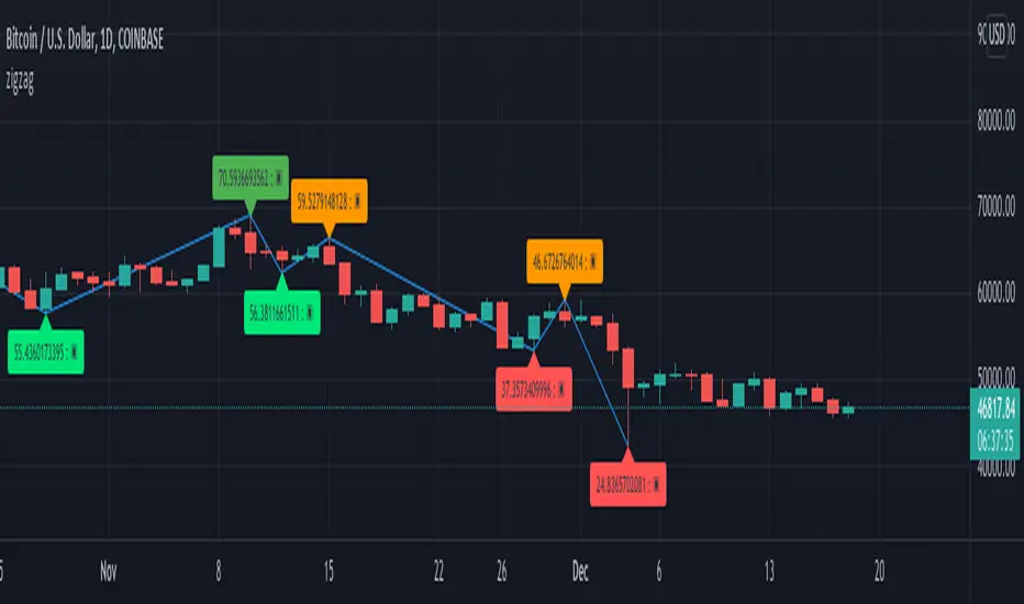 v5Created czigzag method which can take custom high/low sources for both candlesticks and oscillators. This can be useful if we need to create zigzag on different type of candle source such as Heikin Ashi Candles