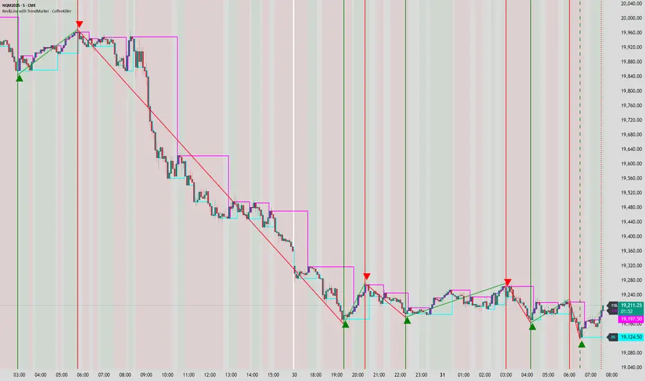Welcome traders! This guide will walk you through the Rev & Line indicator, a sophisticated technical analysis tool developed by CoffeeKiller that combines multiple methodologies to identify market pivots, trends, and potential reversal points.