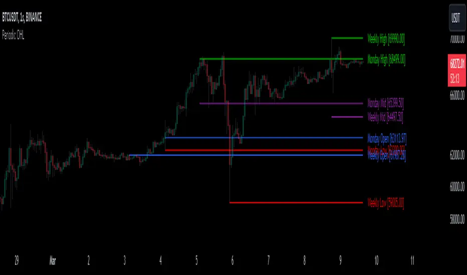 This script generates potential support and resistance levels based on daily, weekly, and monthly open, high, and low prices. In such indicators, security calls produce effective results. However, similar tasks can also be performed by built-in variables. This script serves as an example of how alternative methods can be constructed.