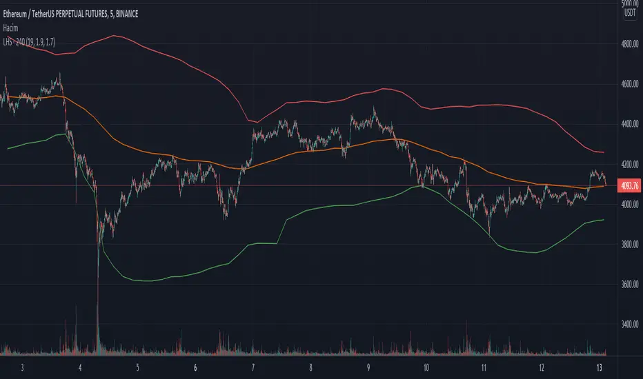 Bollinger Bands with Ema calculation. Based on high and low valus of candle. Also can be used two deviation for both upper and lower bands.