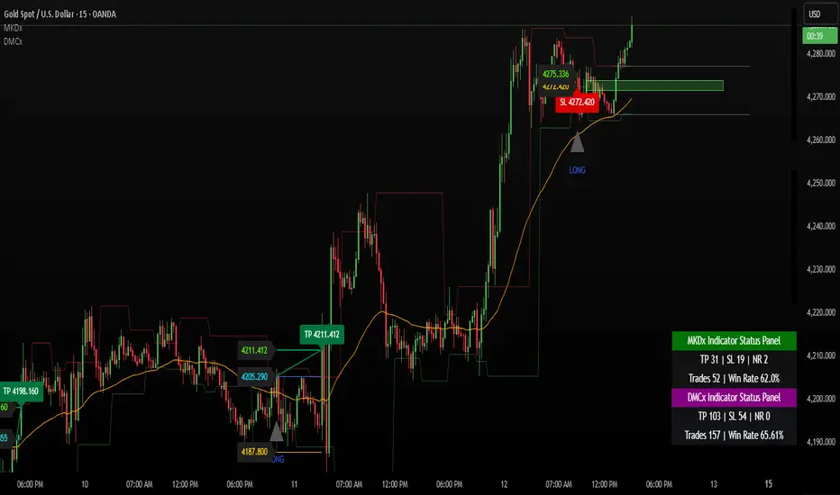 The script was developed and tested mainly on XAUUSD (Gold) using 15-minute and 5-minute charts. You can apply it to other symbols and timeframes at your own discretion, but you should always test and adapt settings for each market.