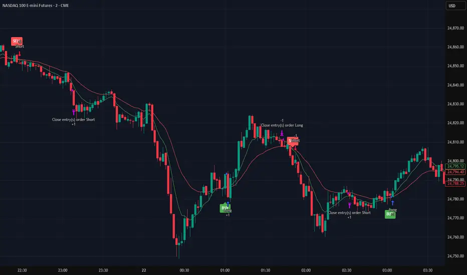 EMA Crossover Entries – The strategy enters long trades when the fast EMA crosses above the slow EMA and short trades when the fast EMA crosses below the slow EMA.