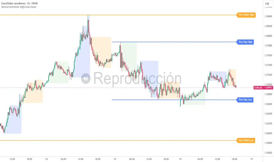 Güncellendi Session Extremes High/Low Zones