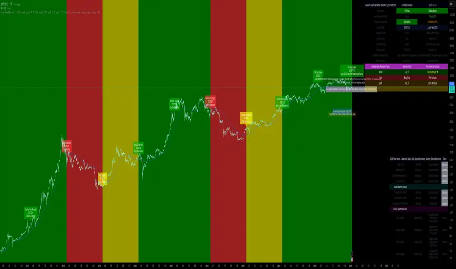 This indicator represents a novel fusion of traditional Chinese cyclical theory with modern financial market analysis. Unlike conventional technical indicators based solely on price action or volume, this tool incorporates: