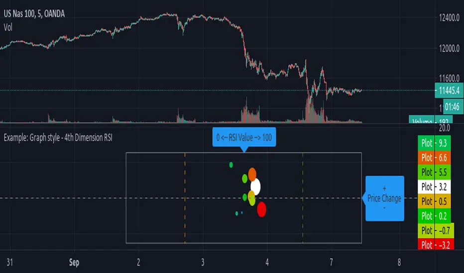 It shows the fluctuations of the RSI and price change over a period of time(10) in a scatter like graph. there is a inversion of axis to make possible graphing the 2 properties.