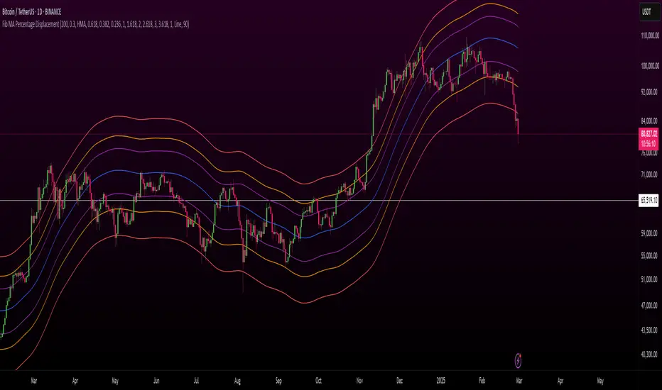This indicator combines Fibonacci levels with percentage-based displacement, creating a versatile tool for analyzing moving averages in relation to market trends and potential reversal points. It's designed to adapt to different market conditions and asset types, making it a valuable addition to a trader's toolkit.