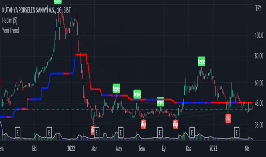 son dip ve tepeleri gösteren, aynı zamanda cci ve atr ile trendin yönünü gösteren trend satırı barındıran indikatör