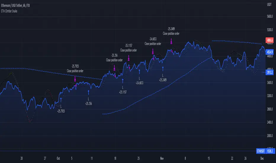 The concept of Climber Snake is to detect the uptrend first and then take the advantage of each correction while the price is rising, while it hold during the bearish trend.