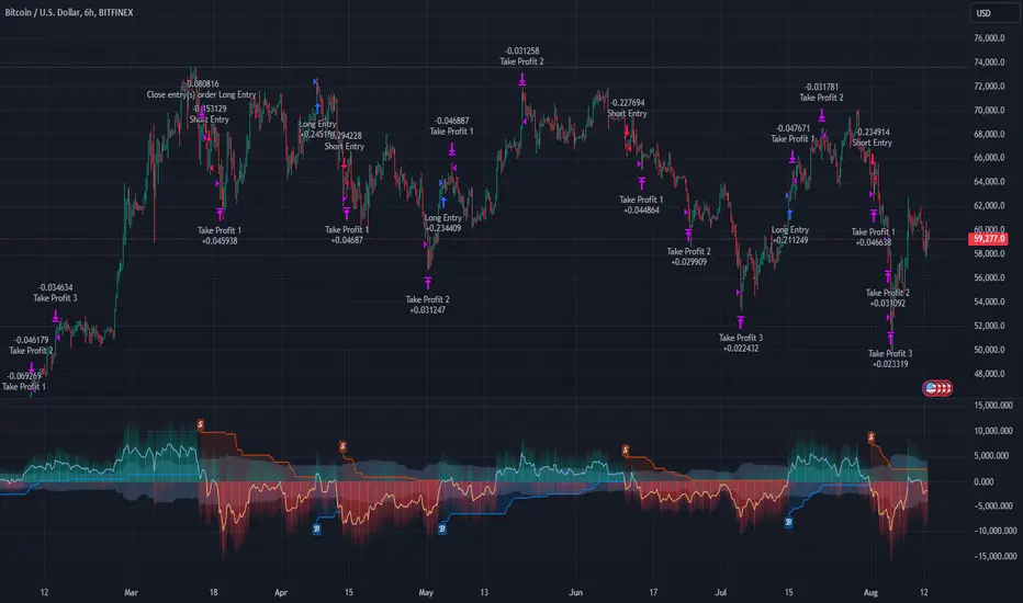 The SuperTrend formula typically calculates an upper and lower band based on the average true range (ATR) and a multiplier (the factor). These bands determine the trend direction. In the FlexiSuperTrend strategy, the oscillator is enhanced by iteratively applying the SuperTrend calculation across different factors. The iterative process allows the strategy to capture both minor and significant trend changes.