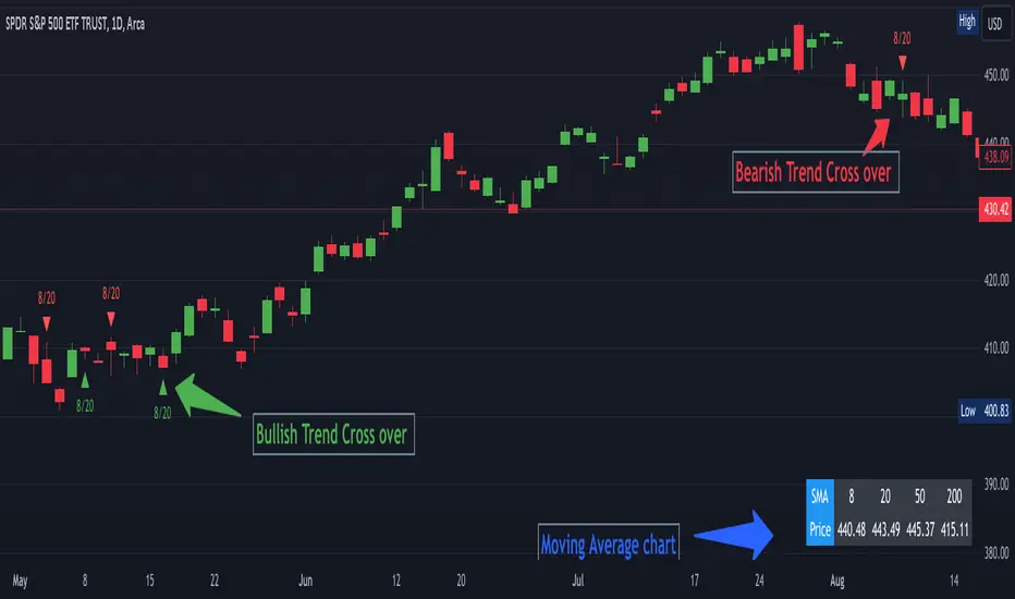 - Visual cues are plotted on the chart when any two SMAs intersect, indicating the type of cross.
