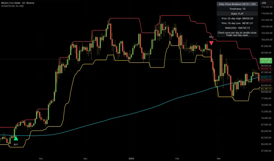 A simple “check once per day” breakout signal tool designed for the Daily (1D) chart.