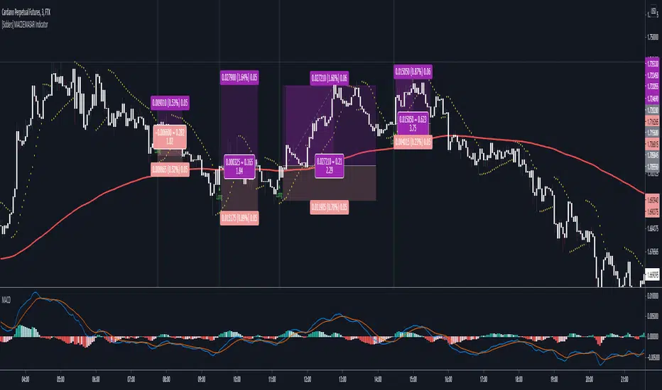 Place the stoploss on the parabolic SAR dot below/above the candle that created the signal. Profit target 1:1 risk:reward ratio, but can ofcourse be changed according to your risk apetite. Might add automatically drawn SL/TPs in a later update.