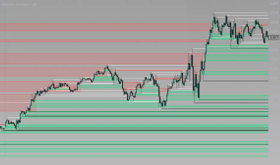 Each bullish or bearish FVG updates in real time and “closes” once price breaks through the opposite boundary.