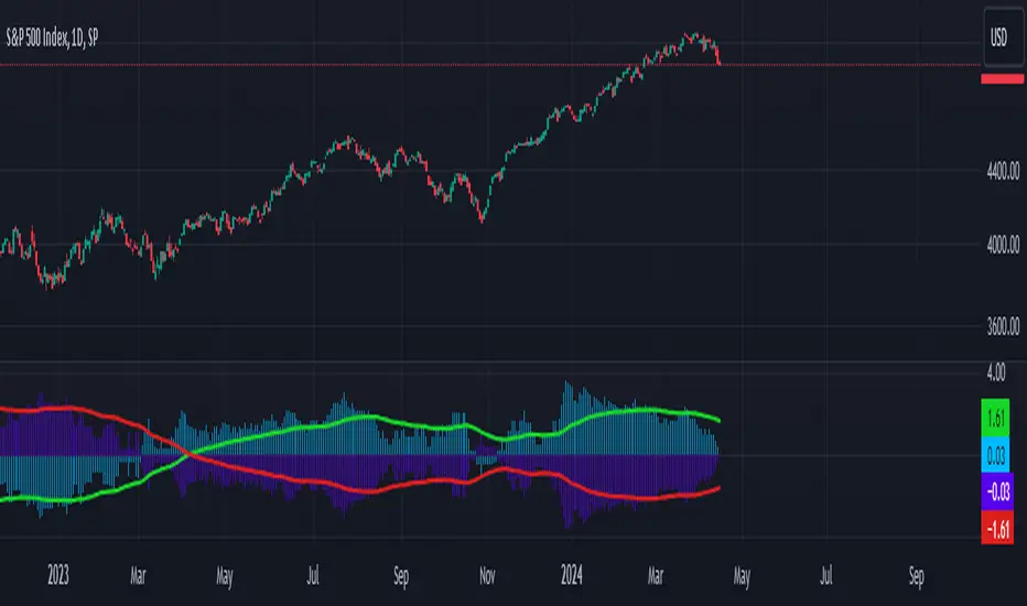 This tool calculates the Bayes bias of returns, which are directional probabilities that provide insight on the "trend" of the market or the directional bias of returns. It comes with two outputs: the default one, which is the Z-Score of the Bayes Bias, and the regular raw probability, which can be switched on in the settings of the indicator.