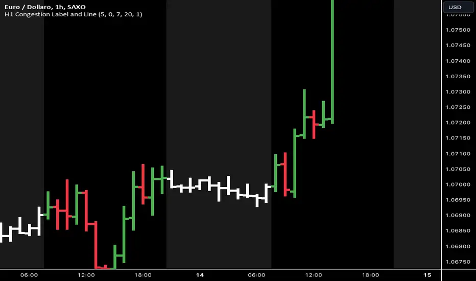 Then, I added a directive to color the night bars in white, from 20:00 to 07:00. For this function too, I added fields to modify the range. Finally, I inserted labels to count the range of the bars in pips, but only for bars over 20 pips. However, I was not able to correct the position to prevent the label from overlapping with the bars. If you have any suggestions on this issue, I would be grateful.