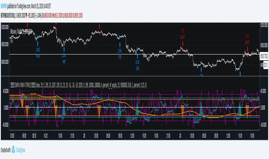 This script makes use of three RMI's, to indicate Overbought/Oversold.