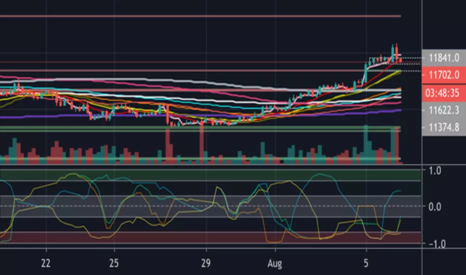It plots the correlation between the current chart (say BTCUSD ) versus 4 user-definable indices, currency pairs, stocks etc.