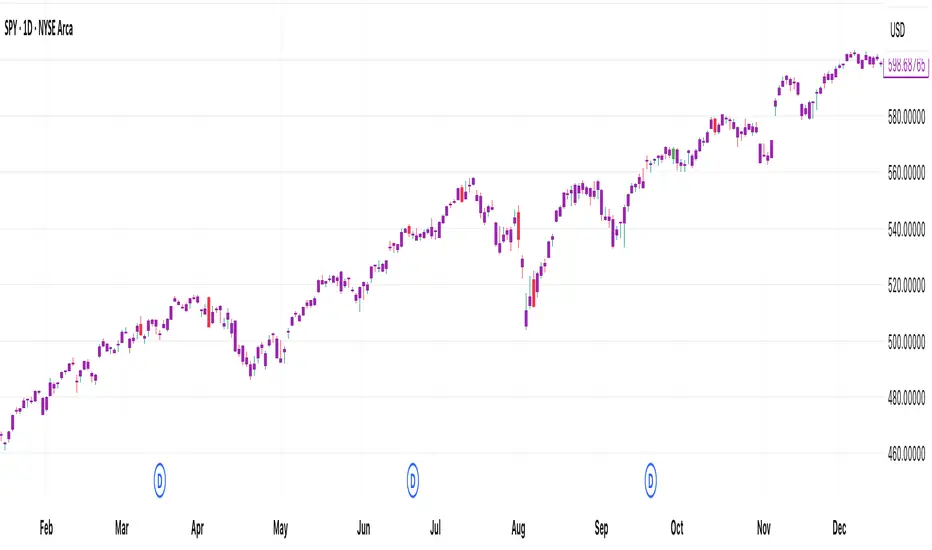 [DEM] Engulfing Candlestick Identifier is designed to automatically detect and highlight bullish and bearish engulfing candlestick patterns by analyzing the relationship between consecutive candles and applying ATR-based size filters to ensure significant pattern validity. The indicator identifies bullish engulfing patterns when the current candle closes above the previous candle's open, opens below the previous candle's close, and both candles meet minimum size requirements based on ATR thresholds, while bearish engulfing patterns are detected under opposite conditions. The indicator colors bars green for bullish engulfing patterns, red for bearish engulfing patterns, and optionally purple for all other bars when the "Different Color" setting is enabled, helping traders quickly identify potential reversal signals where one candle completely engulfs the body of the previous candle with sufficient magnitude to suggest meaningful momentum shifts.