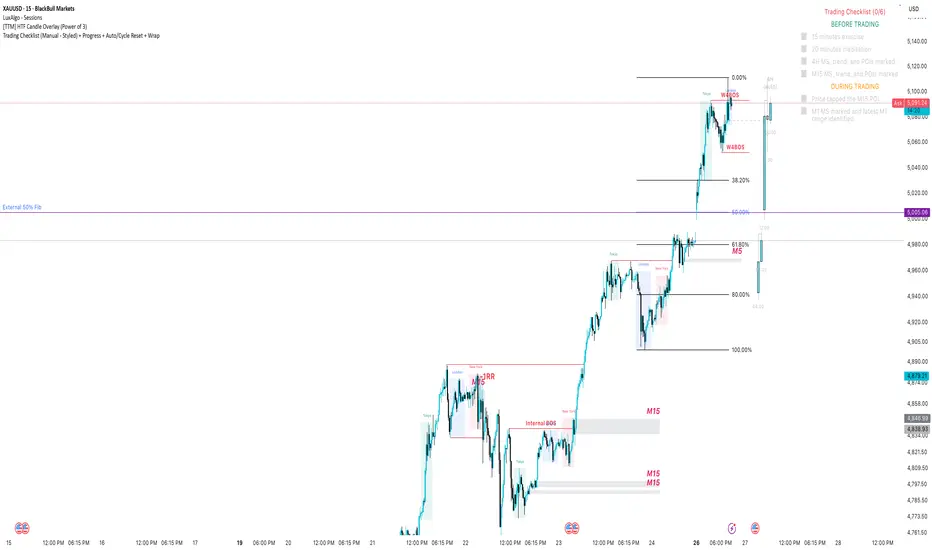 Use Cycle ID / Auto-reset to start a fresh checklist for a new trade/day/session (display-only).