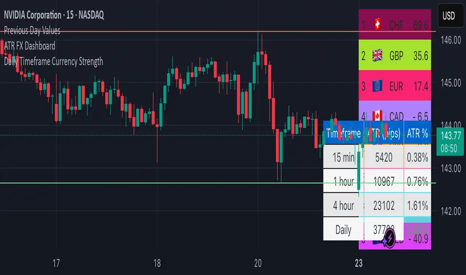 ✔ ATR in Pips — The average price movement over a given timeframe, converted to pips for easy interpretation, automatically adjusting for JPY pairs.