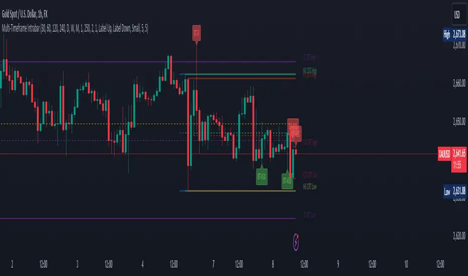 This advanced indicator visualizes Candle Range Theory (CRT) across multiple timeframes, providing traders with a comprehensive view of market structure and potential high-probability setups.