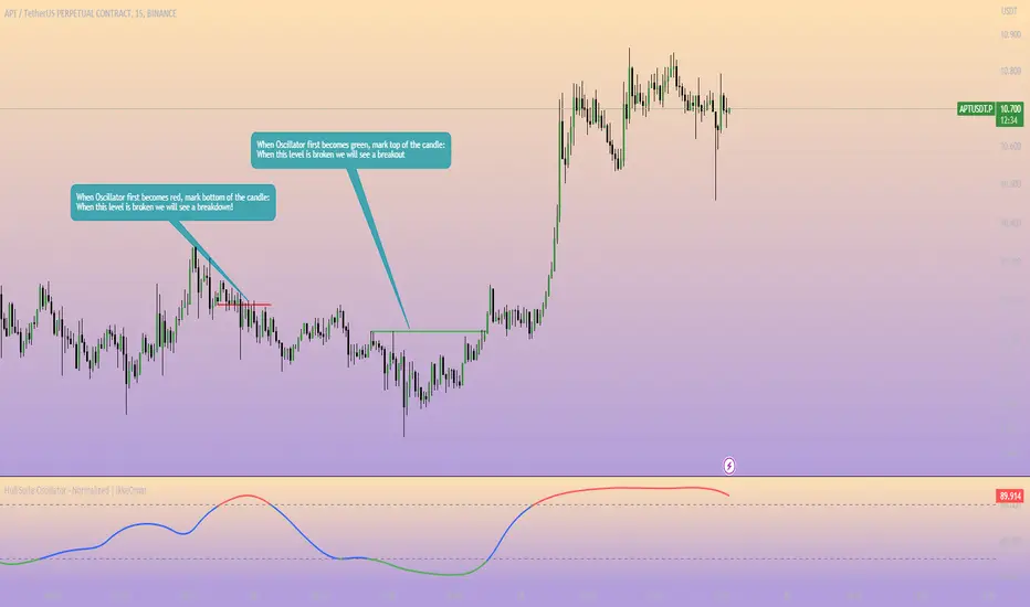 To create the normalized oscillator values, the script finds the highest and lowest values of the Hull moving average within the specified length. It then normalizes the Hull values to a range of 0 to 100 using a formula. This normalized oscillator represents the strength of the trend.