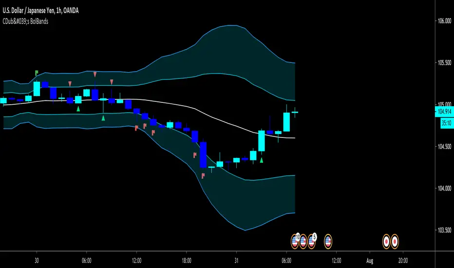 Release Notes: Uses a set of Bollinger Bands (user defined deviation, user defined deviation * 2) to determine possible entry set ups.