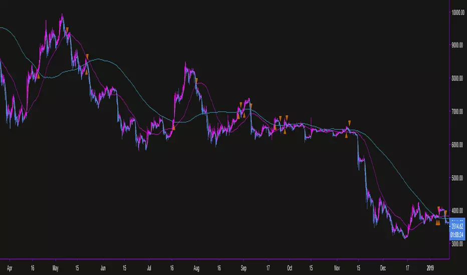 can set alerts on 3 moving averages (crossovers) , experiment with different moving average lengths in the input settings menu, there is also a toggle switch which turns off the 3rd moving average being used as a stop.