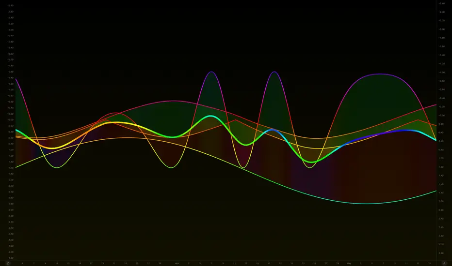 4 — Phase Modulation (Wave 4): Finally, Wave 4's phase is modulated by Wave 3. Wave 3's oscillations shift the phase of Wave 4, leading to phase-related distortions and dynamic wave patterns. The Phase Mod Scale input determines the extent of phase modulation.