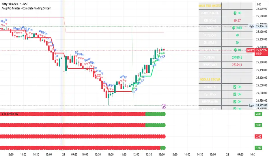 Anuj Pro Master is an advanced multi-module trading system designed for high-probability intraday option trading, especially for index traders (NIFTY / BANKNIFTY).