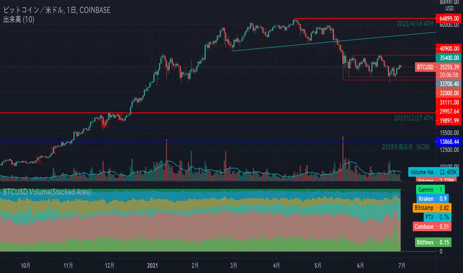 And I'm adding Bitfinex, which I think has a strong impact on the market. - If you uncheck the "100 Percent Stacked Area Chart", the volumes of each exchange will be displayed in piles.