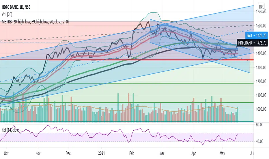 The first thing is 20 SMA with blue coloured SMA line source as high and red coloured SMA line source as low, this together forms a band which can be used for a swing trade, usually useful in bull run of the stock and price tries to get support on this band.