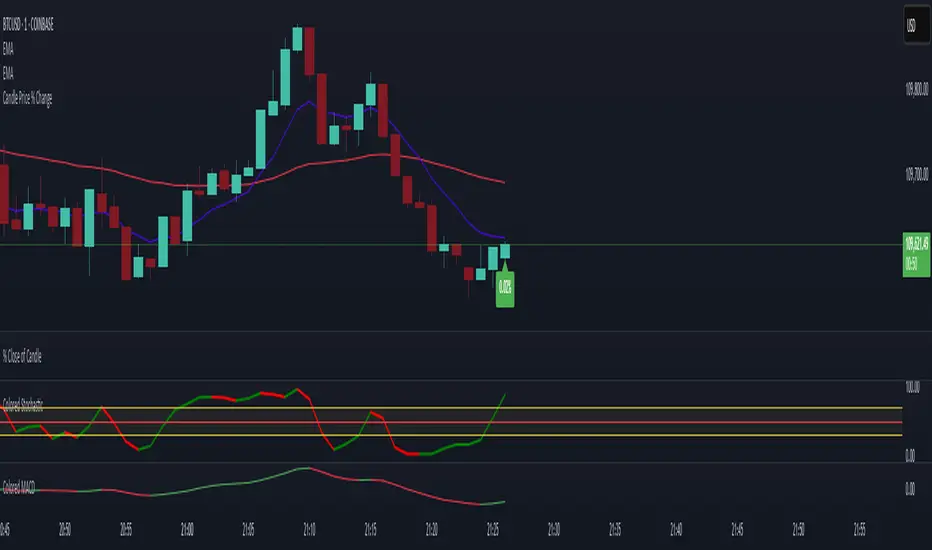If you are using candle bottoms/tops for your stop-loss, this indicator allows you to see the price percentage difference between the current price and the high or low of a candle. This eliminates the need to manually measure the candle every time you need to determine your stop-loss %. It's particularly useful when scalping on small time frames like the 1m.