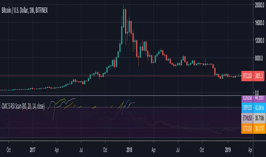 No need to switch between charts anymore. You just need to activate this script and you will have a global view of the current RSI status for your favorite coins. Feel free to edit the source code yourself to add / remove more coins to the scan list.