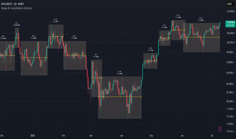 I’m excited to share my latest discovery with you — the Range & Consolidation Detector. This script is built on a unique methodology I’m truly proud of. It uses no traditional indicators like ADX, RSI, or ATR — just pure statistics and mathematics under the hood. No parameters to tweak, no settings to guess — it just works, right out of the box.
