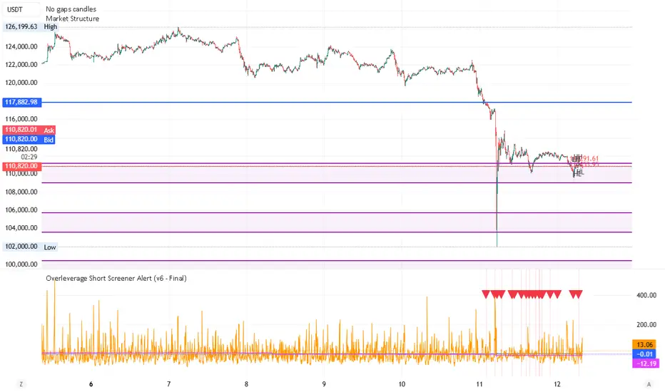 Overleverage Short Screener Alert Guide (inspired by a posting "an on-chain trader nicknamed "Calm Order King" has reportedly made over $10 million in porfit this month - mainly by shorting BTC and SOL at precise reversal points", this script tries to guess his work.