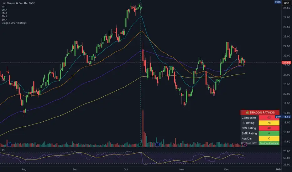 Dragon Smart Ratings is a comprehensive technical and fundamental analysis tool designed to identify market leaders instantly. Inspired by the legendary IBD/CANSLIM methodology, this script calculates five key ratings to help traders separate the "True Leaders" from the rest of the market.