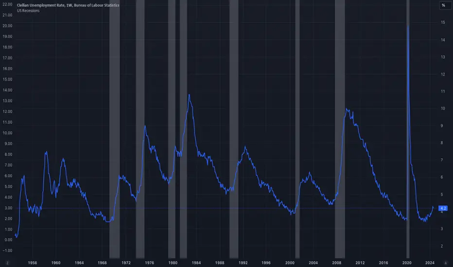 This simple script uses James Hamilton's JHDUSRGDPBR indicator to colour areas representing recession periods in the US. Best used in conjunction with other macroeconomics indicators, like –as in the example– unemployment rates